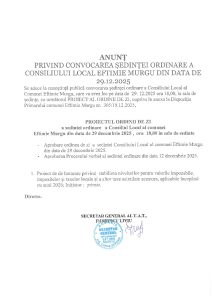 Anunt sedinta CLC 29 decembrie 2025